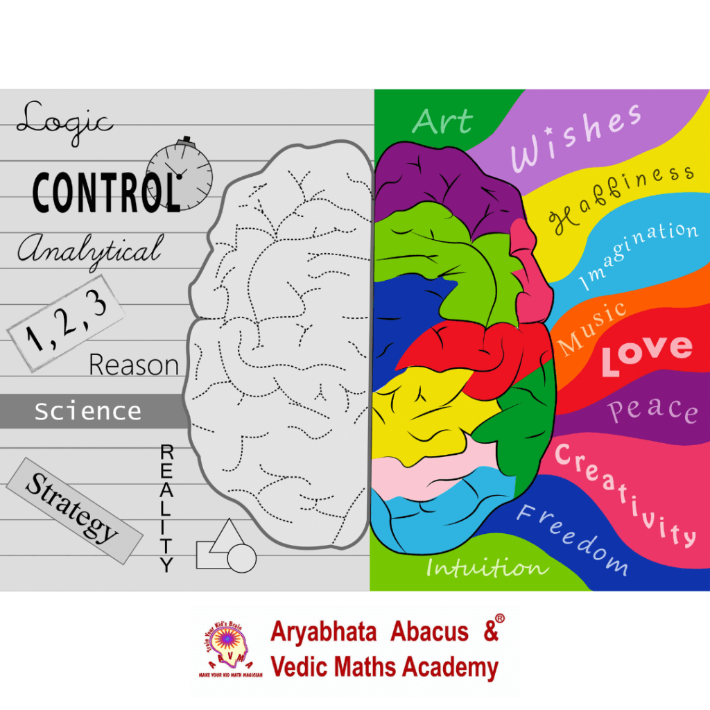 When a kid performs visualization( imagination of abacus beads), there is involvement of the right brain which leads to enhanced activity of the right brain. Because of visualization there is improvement in the creativity, Imagination,concentration which are governed by right brain activity.